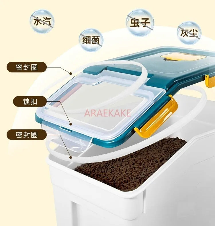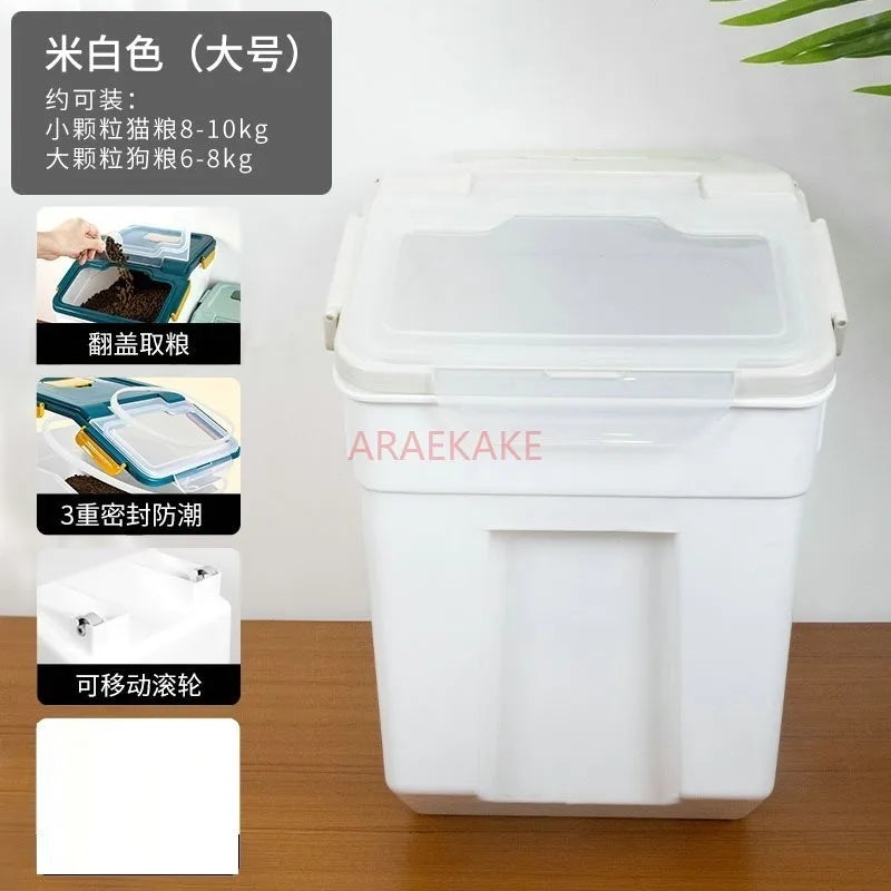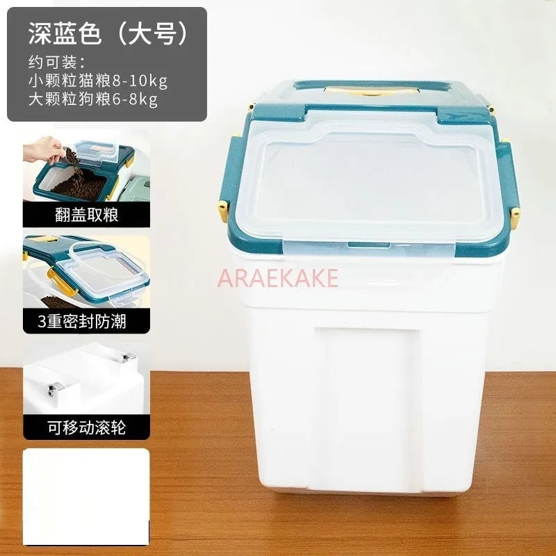 Cat food storage bucket, dog food sealed 10 pounds, 20 pounds, sealed moisture-proof pet storage bucket, large capacity vacuum s